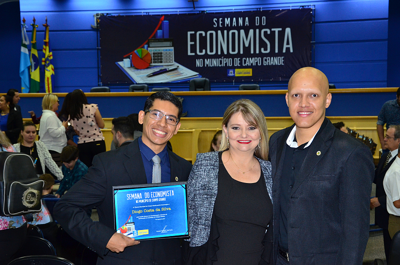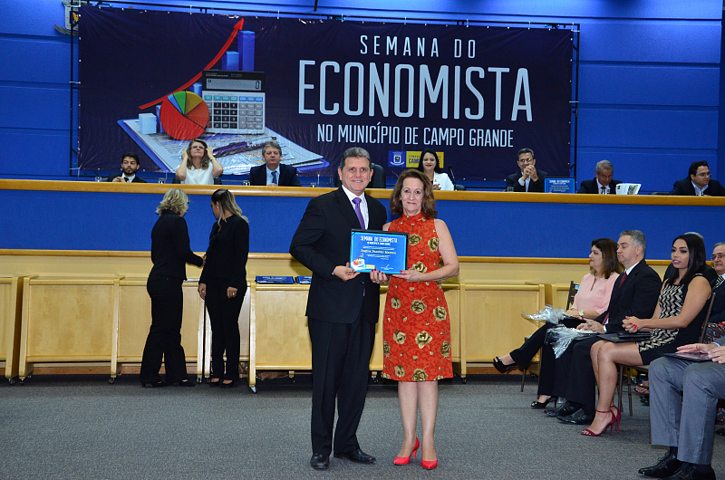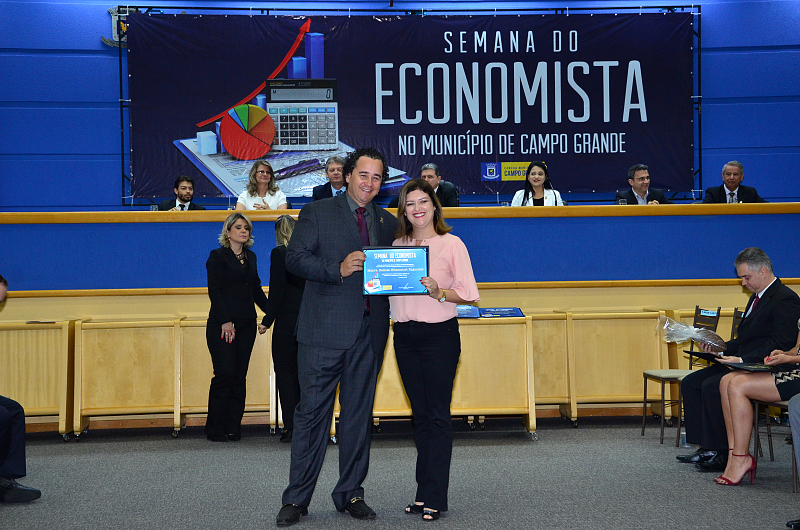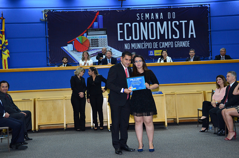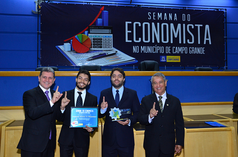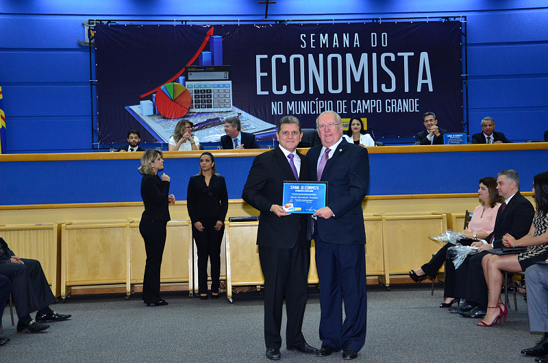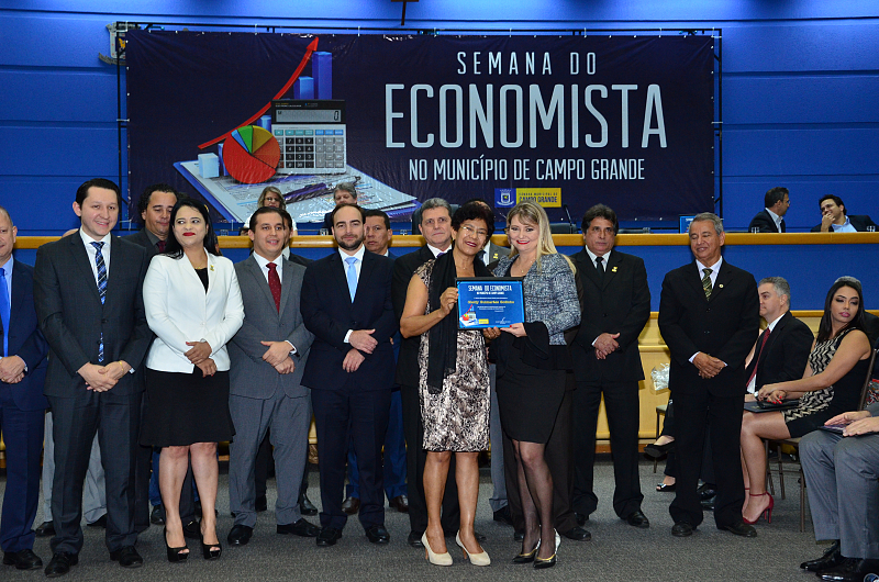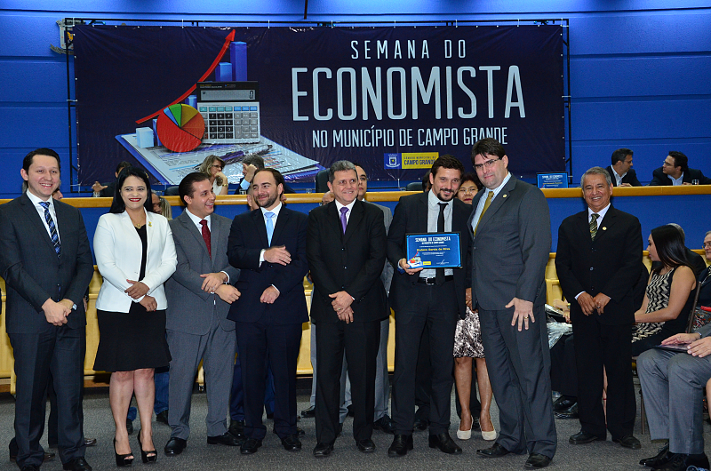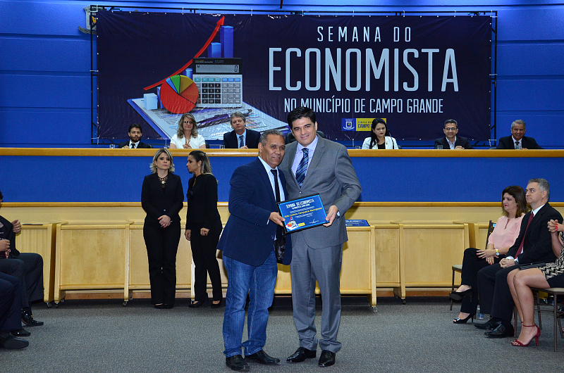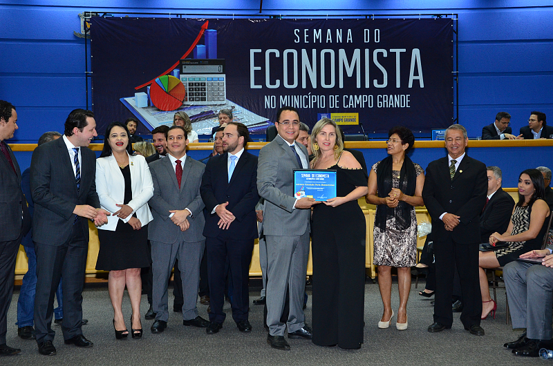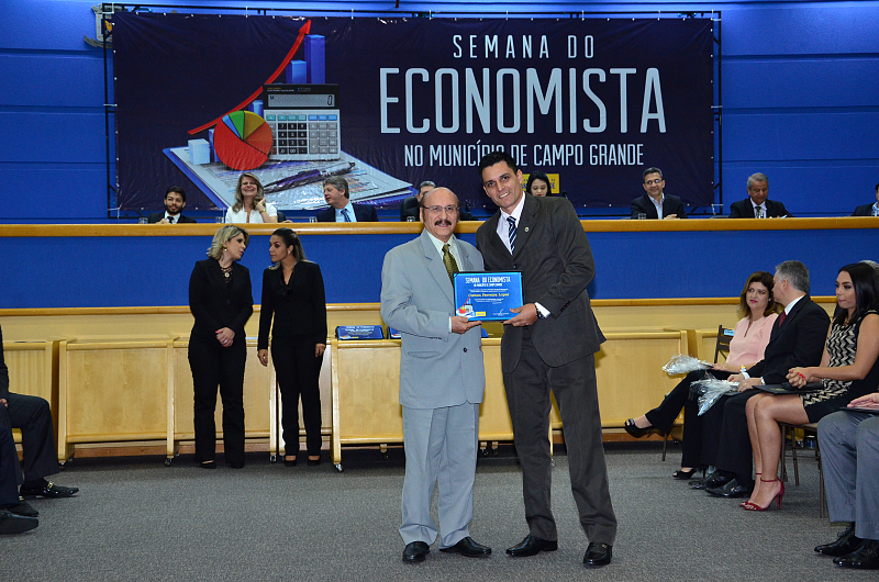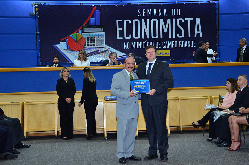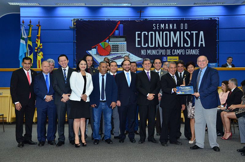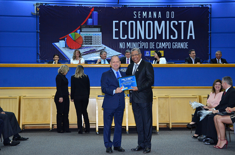 Os vereadores da Câmara Municipal de Campo Grande realizaram, na quarta-feira (09/08/2017), Sessão Solene em alusão a Semana do Economista. A Semana foi instituída na Capital por meio da lei n. 4.654/08, de autoria dos vereadores Cristóvão Silveira e Jorge Martins. Na ocasião, foram homenageados economistas que prestaram relevantes serviços à comunidade campo-grandense. Foi prestado também pelo Corecon uma homenagem a Cristóvão Silveira em forma de agradecimento ao empenho dedicado em 2008, como vereador, em conduzir o processo de aprovação da lei que constituiu a Semana do Economista na Capital.