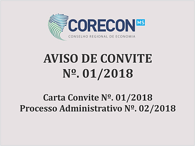 O Conselho Regional de Economia de Mato Grosso do Sul - 20ª Região, através da Comissão de Licitação, designada pela Portaria n° 05/2018 CORECON-MS, torna público aos interessados a realização de licitação na modalidade CONVITE, do tipo MENOR PREÇO, nos termos da legislação pertinente.