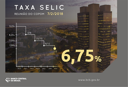 O Copom decidiu, por unanimidade, reduzir a taxa Selic em 0,25 ponto percentual, para 6,75% a.a.
