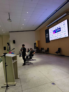 Vinícius, acadêmico do 6º semestre na ESAN, abordou as transformações sociais e econômicas impulsionadas pela IA no Movimento Empresa Júnior.