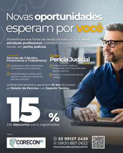 Curso Perícias de Cálculos Financeiros e Trabalhistas: você aprenderá os conceitos básicos referentes à atividade da perícia financeira e trabalhista e a prática dos cálculos mais usuais.