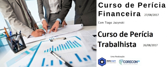 A Datasight - Pesquisa e Inteligência de Negócios, em parceria com o CORECOM-MS, irá oferecer os cursos de PERÍCIA TRABALHISTA e PERÍCIA FINANCEIRA, nos dias 26/08 e 27/08/2017, na sede do conselho.