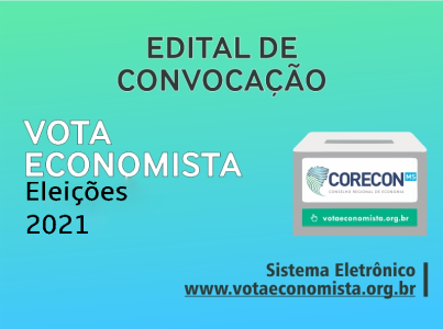 Nos termos das Resoluções 1.981, de 23/10/2017, 2.068, de 10/05/2021, do Conselho Federal de Economia - Cofecon, faço saber que no dia 27/10/2021, a partir das 8 (oito) horas, até o dia 29/10/2021, às 20 (vinte) horas (horário oficial de Brasília-DF), no sítio eletrônico www.votaeconomista.org.br, o qual, naquele período, poderá ser acessado no Brasil ou no exterior, serão realizadas as eleições para renovação do terço, composto de 3 (três) Conselheiros Efetivos e 3 (três) Suplentes do Corecon-MS, com mandato de 3 (três) anos: 2022 a 2024; e de 1 Delegado-Eleitor Efetivo e 1 Suplente, junto ao Colégio Eleitoral do Cofecon. O prazo para registro de chapas será de 30 (trinta) dias, contados a partir do dia útil seguinte a esta publicação, encerrando-se às 17 horas. O registro será feito por meio do endereço eletrônico coreconms.gerencia@gmail.com, cabendo à chapa, o encaminhamento dos documentos originais até o último dia do prazo de inscrição, via correios, para o endereço da sede do Corecon-MS, localizada no Av. Afonso Pena, 2386, sala 1201, Ed. Dolor de Andrade, Centro, Campo Grande – MS, sendo a data de postagem elemento de comprovação da tempestividade do protocolo. Na possiblidade de atendimento presencial, a depender das condições sanitárias decorrentes da Pandemia de Covid-19, o registro poderá ser efetuado presencialmente. A votação dar-se-á mediante senha individual fornecida pelo Cofecon aos Economistas adimplentes (na hipótese de parcelamento de débitos, adimplente com as parcelas vencidas até 15/10/2021) e remidos, integrantes do Colégio Eleitoral Definitivo, constituído até o dia 20/10/2021. O voto será exercido diretamente pelo Economista. Não haverá voto por procuração. As eleições serão realizadas exclusivamente pela internet, não sendo permitido a votação por cédulas, por correios e qualquer outra forma física. Em hipótese alguma poderão ser recepcionados votos de profissionais que se dirigirem à sede do Corecon-MS ou em sua Delegacia Regional. Os trabalhos de apuração serão realizados remotamente ou nas dependências da sede do Corecon-MS, imediatamente após encerrado do período de votação., cujos resultados deverão ser divulgados até o dia 01º/11/2021. A Comissão Eleitoral será constituída pelos Economistas: Sérgio da Rocha Bastos (Presidente), Jorge Tadeu de Barros Veneza e Ângelo Mateus Prochmann, como titulares e Volmir Meneguzzo como suplente, sendo sua primeira reunião realizada no dia 14/09/2021, às 16 horas, na sede do Corecon-MS ou virtualmente, cuja ferramenta, código de acesso e senha serão disponibilizados oportunamente. Durante a pandemia de Covid-19, o atendimento presencial ocorrerá de segunda à sexta-feira das 13h às 18h, podendo ser suspenso sem aviso prévio por regulamentações sanitárias. Campo Grande, 11 de agosto de 2021.