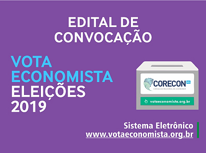Nos termos das Resoluções 1.981, de 23/10/2017, e 1.992, de 28/5/2018, do Conselho Federal de Economia - Cofecon, faço saber que no dia 29/10/2019, a partir das 8 (oito) horas, até o dia 31/10/2019, às 20 horas (horário oficial de Brasília-DF), no sítio eletrônico http://www.votaeconomista.org.br, o qual, naquele período, poderá ser acessado no Brasil ou no exterior, serão realizadas eleições para renovação do terço, composto de 3 (três) Conselheiros Efetivos e 3 (três) Suplentes do Corecon-MS, com mandato de 3 (três) anos: 2020 a 2022; e de 1 Delegado-Eleitor Efetivo e 1 Suplente, junto ao Colégio Eleitoral do Cofecon. O prazo para registro de chapas será de 30 (trinta) dias, contados a partir do dia útil seguinte a esta publicação, encerrando-se às 17 horas. O registro será feito na sede do Corecon-MS, localizada na Av. Afonso Pena, n°. 2386, Edf. Dolor de Andrade, 12° andar, Sala 1201, Centro, Campo Grande - MS, no horário das 8h às 12 horas e das 14h às 17 horas. A votação dar-se-á mediante senha individual fornecida pelo Cofecon aos Economistas adimplentes (na hipótese de parcelamento de débitos, adimplente com as parcelas vencidas até 17/10/2019) e remidos, integrantes do Colégio Eleitoral Definitivo, constituído até o dia 17/10/2019. O voto será exercido diretamente pelo Economista. Não haverá voto por procuração. Na impossibilidade de o eleitor dispor de computador, o Corecon-MS disponibilizará em sua sede, no horário das 8h às 12 horas e das 14h às 17 horas, computador conectado à Internet com o objetivo de receber a votação. Os trabalhos de apuração serão realizados em 31/10/2019, às 20 horas, nas dependências da sede do Corecon-MS, imediatamente depois de encerrado o período de votação. A Comissão Eleitoral constituída pelos Economistas: Diogo Costa da Silva (Presidente), Juan Carlos Antonelli Vidal e Homero José Fligliolini como titulares, e Edmilson Vicente Pereira como Suplente.