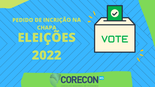 A Comissão Eleitoral do Conselho Regional de Economia 20ª Região/MS – CORECON-MS torna público que recebeu a solicitação de inscrição de uma chapa para as Eleições 2022 do CORECON MS, compostas pelos membros abaixo.