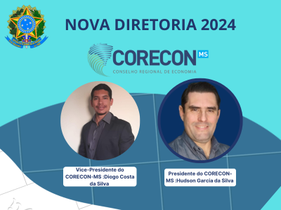 Na última segunda-feira, dia 08 de janeiro, o Conselho Regional de Economia do Mato Grosso do Sul (Corecon-MS) realizou a 499ª Sessão Plenária Ordinária, que elegeu os economistas Hudson Garcia da Silva (Presidente) e Diogo Costa da Silva (Vice-Presidente) para assumir a gestão da entidade no exercício de 2024. O Econ. Hudson Garcia foi reeleito à presidência do Corecon-MS para mais um ano à frente do Conselho.