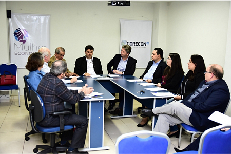 Na última sexta-feira, 10 de agosto, ocorreu a abertura do “Mês do Economista” através da realização de uma Sessão Plenária Comemorativa, na sede do CORECON-MS, aberta a todos os Economistas. Na ocasião, foi renovado o convênio de parceria entre a Secretária do Meio Ambiente e Desenvolvimento Econômico, Produção e Agricultura Familiar (SEMAGRO) e o CORECON-MS e apresentado a nova lista de Consultorias e Consultores responsáveis pela elaboração e apresentação de Projetos de Viabilidade Econômico-Financeira junto a secretária Executiva do Fórum MS-Indústria. O evento contou também com o descerramento das fotos das Comendas Guaicurus (Sr. Edison Araújo, Presidente da FERCOMÉRCIO) e Adam Smith (Economista Ricardo Senna) de Economia do ano de 2017. O Evento contou com a participação dos Economista: Jaime Verruck, Secretário de Estado de Meio Ambiente , Desenvolvimento Econômico, Produção e Agricultura Familiar (SEMAGRO), representando o Governador do Estado Reinaldo Azambuja; Regina Ferro, Diretora Regional do Sesc MS; e Edson Milton Genova, Superintendente de Administração, Orçamento e Finanças (SUAFI/SEMAGRO).