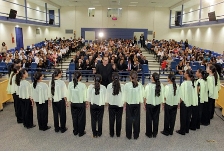 O público presente foi agraciado com a apresentação cultural do coral das meninas de Porto Murtinho, regido pelo maestro Luiz Quirino de Oliveira.