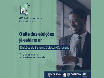 As eleições do Sistema Cofecon/Corecons ocorrerão das 8h do dia 27 de outubro até o dia 29 de outubro, às 20h (horário de Brasília), por meio do site www.votaeconomista.org.br O pleito elegerá um terço dos conselheiros efetivos e suplentes dos Conselhos Regionais de Economia, além de um delegado-eleitor efetivo e um suplente para as eleições do Cofecon. Poderão votar profissionais devidamente registrados no Corecon e adimplentes com as anuidades e débitos de qualquer natureza perante o órgão. Garanta sua participação nas eleições do Sistema: atualize seus dados cadastrais e negocie possíveis pendências até o dia 15/10. Faça a diferença! Participe e exerça seu direito ao voto no Sistema Cofecon/Corecons.