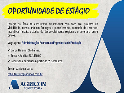 Estágio na área de consultoria empresarial com foco em: projetos de viabilidade, consultoria em finanças e planejamento, captação de recursos, incentivos fiscais, estudos de desenvolvimento regionais e setoriais, entre outros.