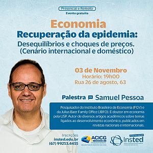 Na próxima quarta-feira no auditório da Faculdade Insted, teremos uma palestra GRATUITA com Prof. Doutor Samuel Pessoa da FGV de São Paulo.
