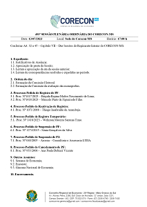 Pauta da 493ª Sessão Plenária Ordinária Do Corecon-MS.