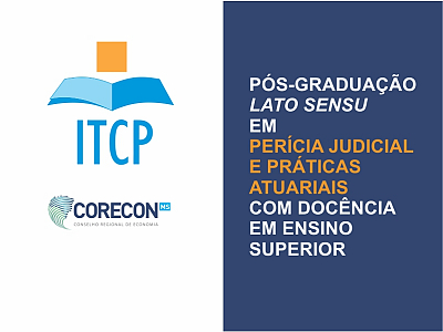 O ITCP (Instituto Tecnológico de Ciência e Pesquisa) irá oferecer a Pós-Graduação em Perícia Judicial e Práticas Atuariais com docência em Ensino Superior, com início das aula em 16/03/2019. Em convênio celebrado entre o CORECON-MS e o ITCP, os Economistas registrados e adimplentes terão desconto de 20% no valor da mensalidade. As inscrições poderão ser realizadas no link a seguir: http://www.itcp.com.br/curso.cfm?cod=1379. Maiores informações no banner informativo abaixo e no link da inscrição. Não perca essa oportunidade! Vagas limitadas...
