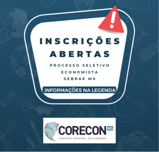O Sebrae/MS está com processo seletivo aberto para contratação de economistas pelo regime CLT!