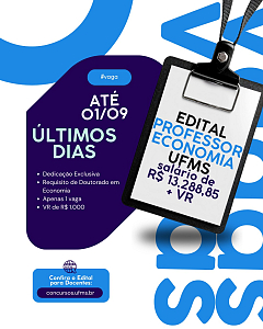 Últimos dias de inscrição do concurso com vaga para Professor de Economia na UFMS