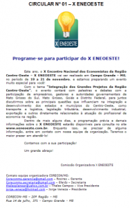 Este ano, o X Encontro Nacional dos Economistas da Região Centro-Oeste – X ENEOESTE vai ser realizado em Campo Grande – MS, no período de 19 a 21 de novembro, e estamos preparando um evento muito especial para você!