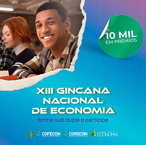 Vem aí a XIII Gincana Nacional de Economia, uma oportunidade para você medir conhecimentos e competir com outros estudantes por prêmios em dinheiro. A primeira fase consiste num jogo de cartas, no qual os estudantes deverão responder a diversas perguntas sobre temas econômicos. Os melhores colocados avançam para a fase seguinte.