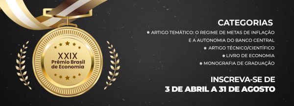 Estão abertas as inscrições para a 29ª edição do Prêmio Brasil de Economia (PBE), a principal premiação voltada para profissionais e estudantes das Ciências Econômicas. Os interessados podem se inscrever a partir de hoje, 3 de abril, até o dia 31 de agosto de 2023, em quatro categorias: Livro de Economia, Artigo Técnico/Científico, Monografia de Graduação e Artigo Temático: O regime de metas de inflação e a autonomia do Banco Central. A premiação total será de R$18 mil.