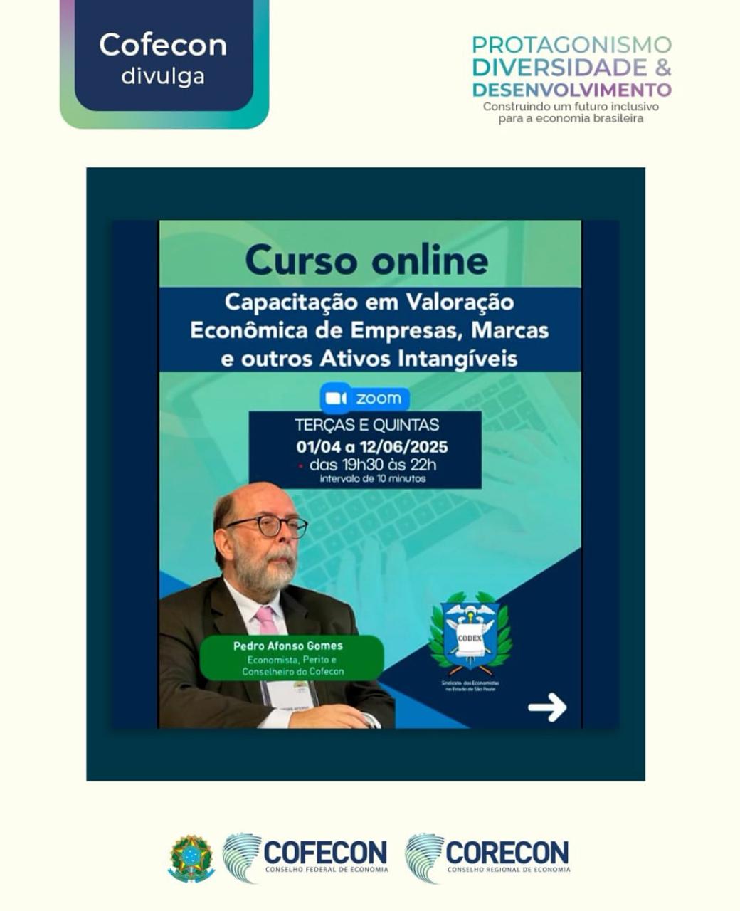 Convite para o curso "Capacitação em Valorização Econômica de Empresas, Marcas e outros Ativos Intangíveis"!