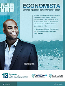 13 de Agosto - Dia do Economista: o Conselho Regional de Economia presta uma merecida homenagem a todos os economistas do Brasil. Parabéns Economistas!