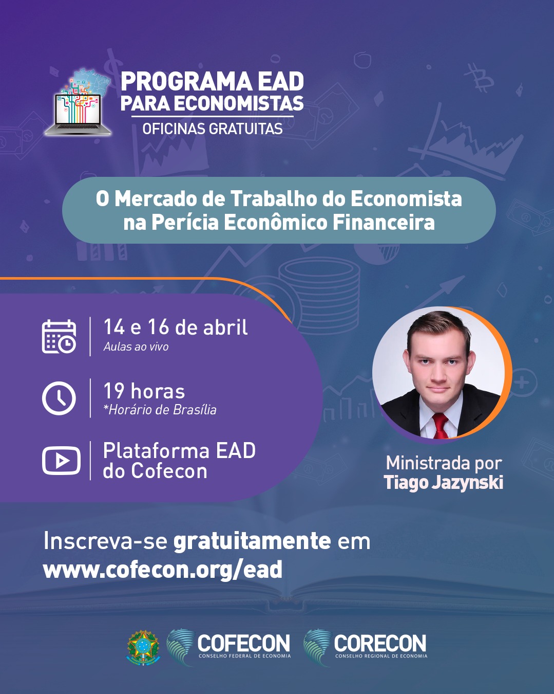 Nos dias 14 e 16 de abril, o Conselho Federal de Economia vai realizar a oficina “O Mercado de Trabalho do Economista na Perícia Econômico-Financeira” — uma ótima oportunidade para ampliar horizontes e explorar uma área cada vez mais valorizada no mercado!