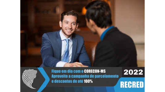 O Corecon-MS aprovou a Resolução n.º 415/2022 que concede desconto nos juros e multas para pagamento à vista (boleto bancário ou cartão de débito) e parcelado (cartão de crédito) das anuidades em aberto. Com essa iniciativa, os Economistas que possuem débitos vencidos até 31 de março de 2021, poderão regularizar sua situação perante o Conselho com descontos de até 100% sobre juros e multas para pagamento à vista ou conforme tabela abaixo: