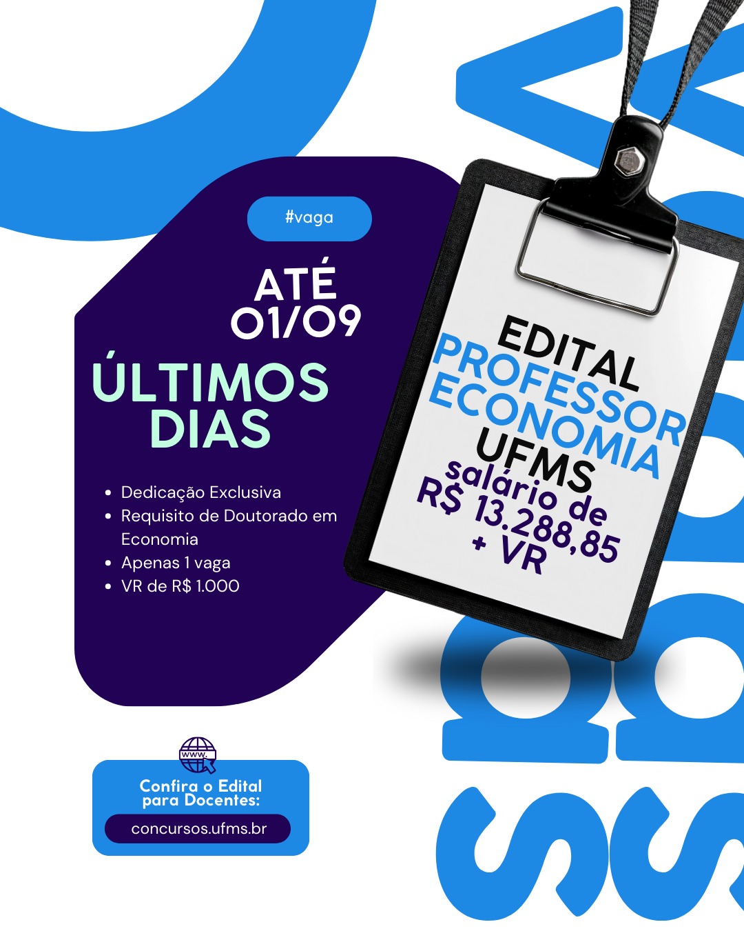Últimos dias de inscrição do concurso com vaga para Professor de Economia na UFMS