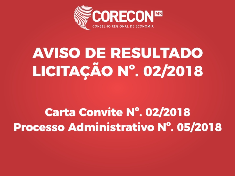Com fundamento no inciso VI, do art. 43, da Lei nº 8.666/93 e posteriores alterações, e tendo em vista o que consta nos autos do processo administrativo nº 05/2018, HOMOLOGAR o procedimento licitatório na modalidade convite nº 02/2018, tipo menor preço global, cujo objeto da presente licitação é a contratação de empresa especializada em obras de engenharia para a reforma da nova sede do Conselho Regional de Economia 20ª Região - MS, na Av. Afonso Pena 2386 – 12º andar, sala 1201 – Ed. Dolor de Andrade. Área a reformar 136,61 m², em conformidade com os projetos, memorial, layout e planilhas (Orçamentária, BDI, Composição e cronograma físico-financeiro) e demais condições expressas no edital, e ADJUDICAR o objeto licitado em favor de empresa C.E. Silvério Empreiteira de Mão de obra, CNPJ 27.946.203/0001-21, pelo valor global de R$ 132.233,33 (cento e trinta e dois mil, duzentos e trinta e três reais e trinta e três centavos).