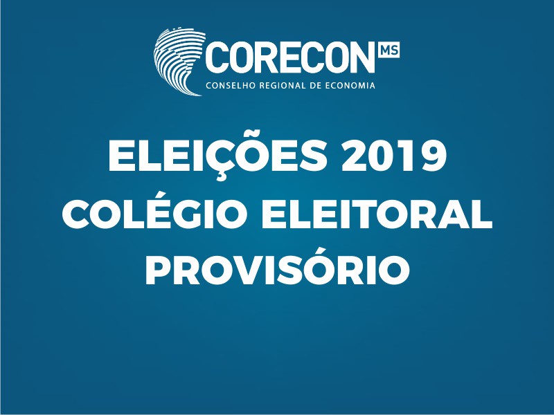 Divulgação da relação do Colégio Eleitoral Provisório, constituído pelos Economistas adimplentes e remidos. Em breve maiores informações sobre o processo eleitoral e o Edital de Convocação para as Eleições 2019 do CORECON-MS.