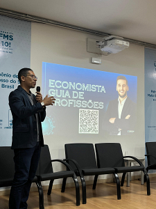 Na última sexta-feira (06/03), o Corecon-MS marcou presença na recepção aos novos estudantes dos cursos de Ciências Econômicas e Relações Internacionais da Universidade Federal de Mato Grosso do Sul. A instituição foi representada pelo seu presidente, Diogo Costa da Silva, que conduziu uma apresentação sobre temas essenciais para a formação e a carreira dos futuros profissionais.