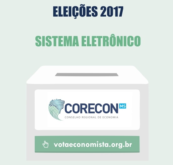 O Conselho Regional de Economia de Mato Grosso do Sul informa que irá realizar o processo eleitoral no dia 30 de outubro de 2017, a partir das 8 (oito) horas até as 20 (vinte) horas do dia 31 de outubro, horário de Brasília, por meio do sítio eletrônico www.votaeconomista.org.br.